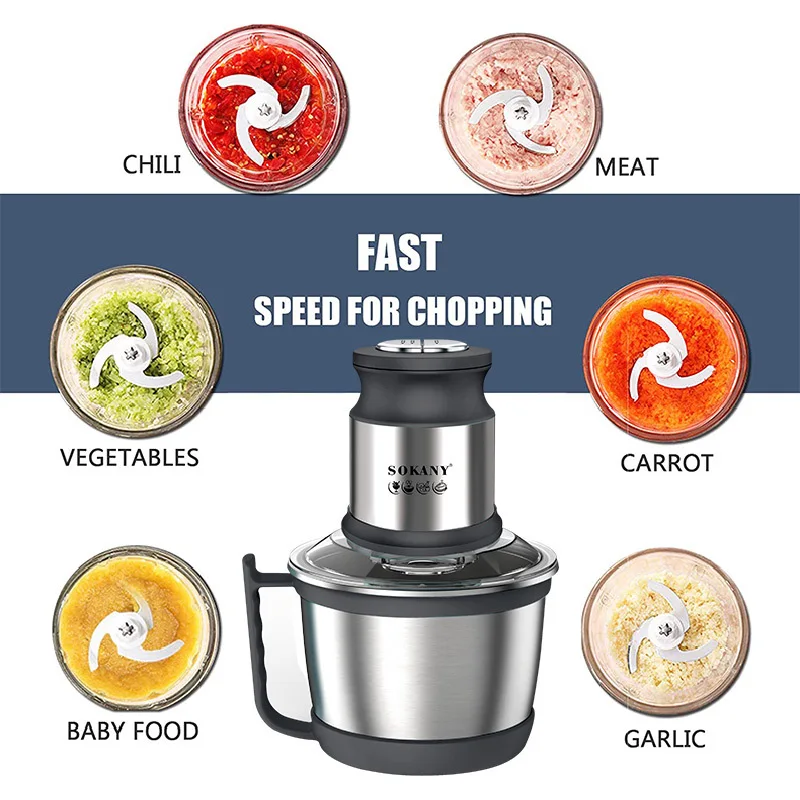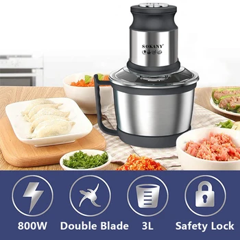 Electric 3L multi-functional stainless steel body electric meat grinder electric supplementary food processor 800W