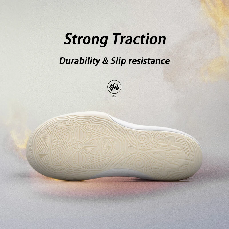 GCU: GCU (Ground Control Unit) is a high-performance outsole material technology formulated with cast polyurethane.Combined with a special vacuum and defoaming process, the material performance is more stable and lightweight, strengthening the grip performance of sudden stops and sudden starts, and significant lateral changes in basketball, achieving a abrasion and slip resistance, and lightweight outsole that helps athletes achieve stronger athletic performance.
