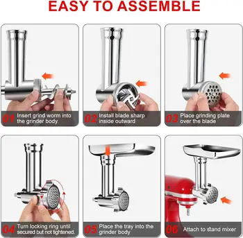 • 🌭 [Perfect Meat Grinder Attachment]: Specifically designed for use with KitchenAid stand mixers, this meat grinder attachment seamlessly installs on all KitchenAid stand mixers without any issues of loosening. It is the ultimate gift for kitchen enthusiasts, making it the perfect addition to your kitchen tools.
