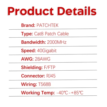 Patchtek Cat8 Lan 40G RJ45 Ethernet Cable Networking 0.2M-20M SSTP 28AWG Twisted pairs 2000Mhz Internet Lan Cord for Laptops PS