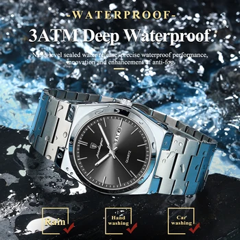 POEDAGAR Luxury Men’s Quartz Wristwatch Waterproof Luminous Date Week Man Watch Stainless Steel Business Fashion Watches For Men