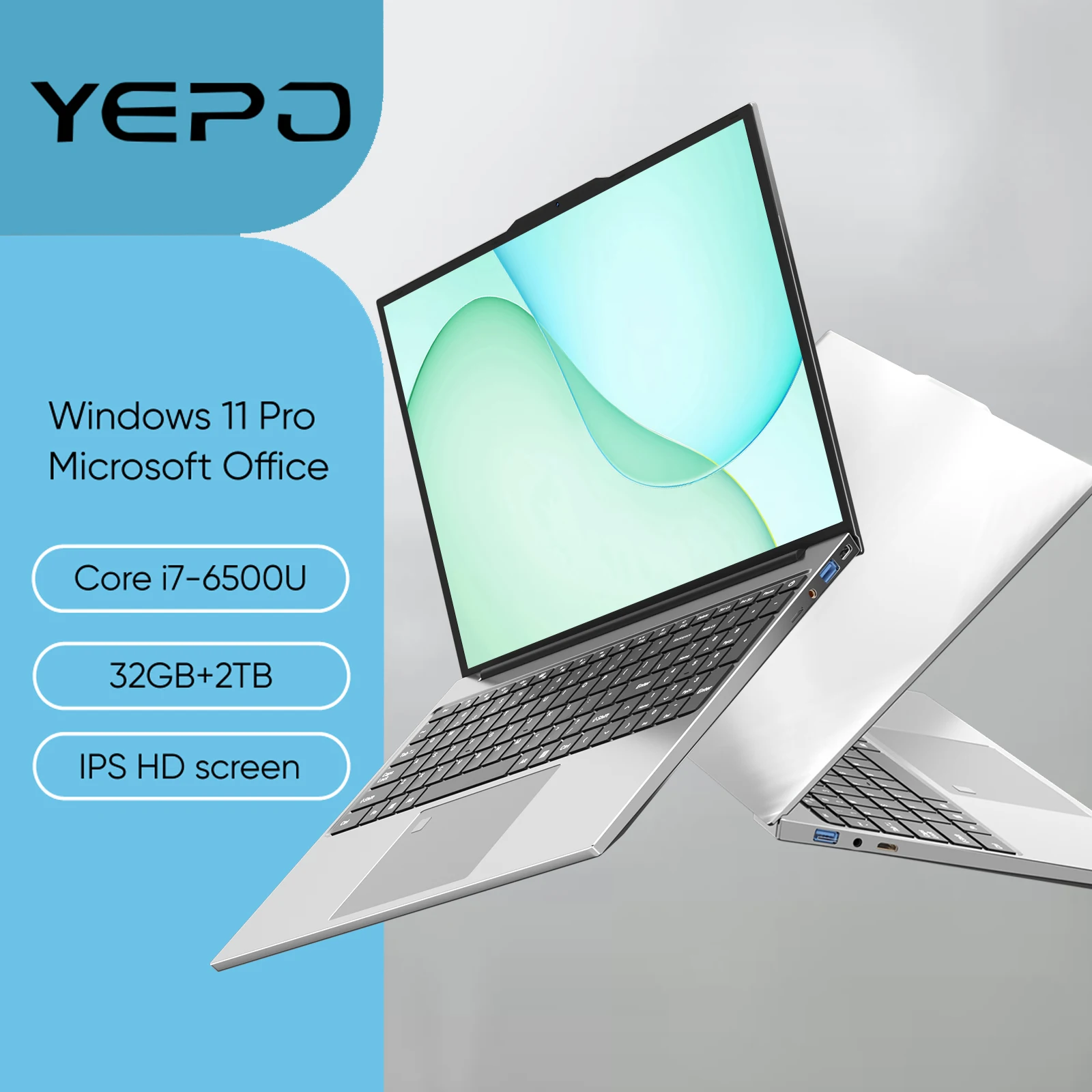 YEPO 15.6 “Laptop Intel Core i7-6500U 32GB RAM 2048GB SSD ROM 5000mAh Windows 11 Pro Gaming Laptop Office Study PC