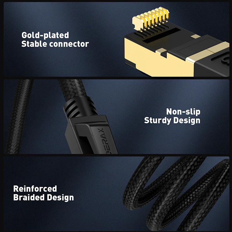 Gold-plated connectors, anti-slip & reinforced sturdy design with braided protection.