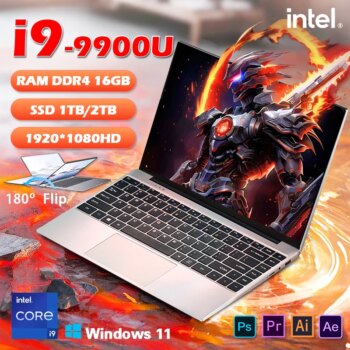 14.1″ Portable Laptop Gaming Core i9 9900U Windows 11 Laptops 16GB DDR4 1TB SSD 1920*1080 HD Computer Office Notebook PC Gamer