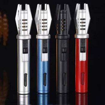 2025 New Outdoor Windproof Butane Gas Lighter Turbo Torch Blue Strong Flame Jet Metal Lighter Barbecue Welding Tool