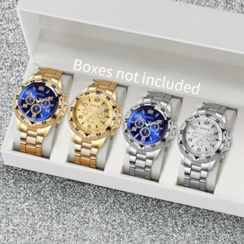 4 Pcs/set Men’s Fashion Business Watches Large Display Analog Quartz Watch for Men Watch Gift Men’s Watches (Without Box)