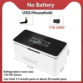 5V 110V-240V Portable Insulin Refrigerator Mini Home 0-18℃ Refrigeration USB Plug In Small Refrigerator Without Battery