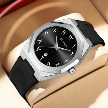 BESTWIN Fashion Luxury Arabic Men’s Quartz Watch Business Casual Silicone Strap Mens Wristwatch Family Friends Birthday Gifts